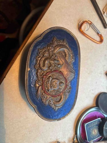 Vintage Japanese Mixed Metal and Enamel Box Lid