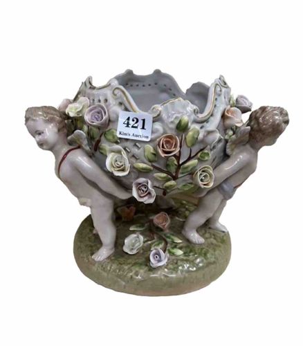 Dresden-style Capodimonte Porcelain Putti and Floral Centerpiece Bowl