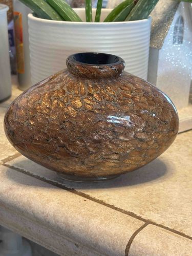 Hand-Blown Vitreous Art Glass Vase with Metallic Gold Avventurina Finish
