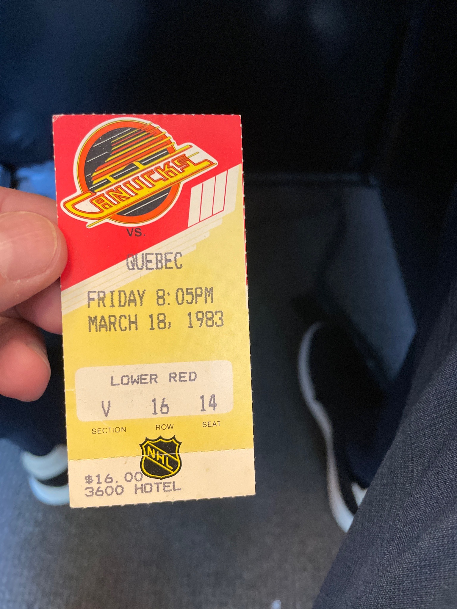Vintage 1983 Vancouver Canucks vs. Quebec Nordiques Ticket Stub