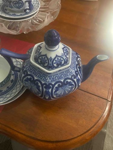 Hexagonal Blue and White Teapot