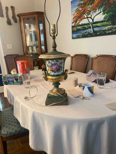 Neoclassical Style Hand-Painted Porcelain and Gilt Metal Urn Lamp