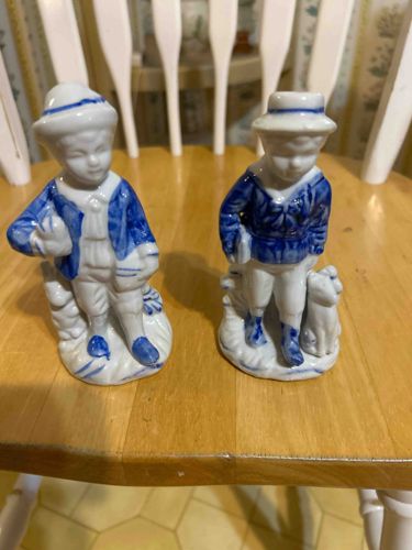 Pair of Blue and White Dutch-Style Porcelain Figurines