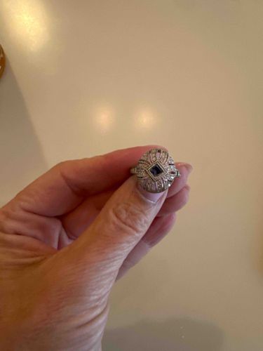 Art Deco Style Sapphire and Diamond Filigree Ring
