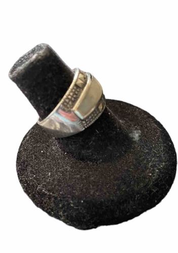 Vintage Mother of Pearl and Marcasite Sterling Silver Band Ring