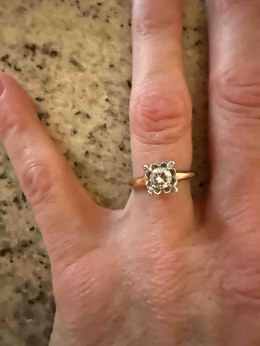Vintage Round Brilliant Diamond Solitaire Ring in Two-Tone Illusion Setting