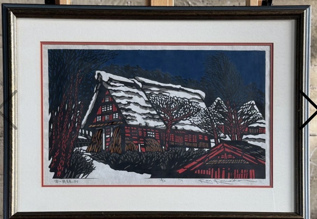 Kan Kawada - 'Snow in Hida Village' (Hida no Sato), Woodblock Print