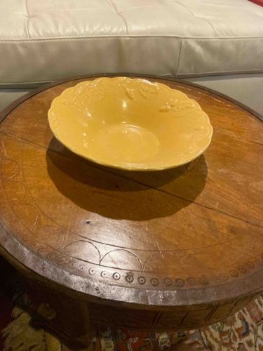 Yellow Ceramic Scalloped Serving Bowl with Embossed Fruit Motif