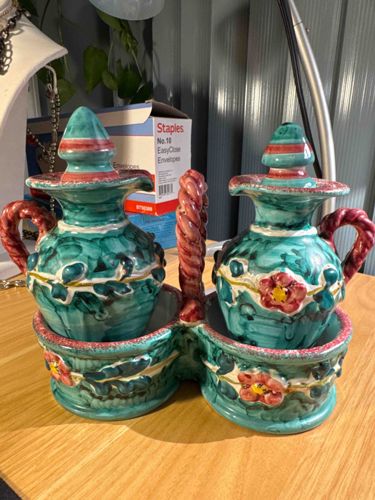 Vintage Italian Majolica Style Cruet Set