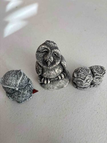 Trio of Cast Stone Miniature Owl Figurines