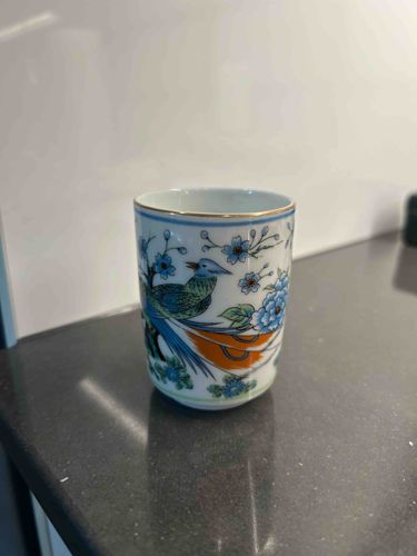 Japanese Porcelain Yunomi Tea Cup with Phoenix and Floral Motif
