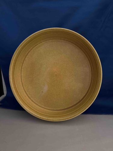 Vintage Mid-Century Speckled Mustard Stoneware Serving Bowl