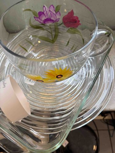 Hand-Painted Floral Glass Oversized Teacup and Snack Saucer Set
