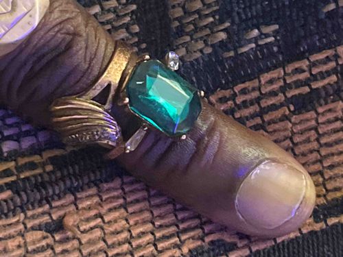 Emerald-cut Green Glass or Synthetic Stone Cocktail Ring with Accents
