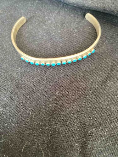Patrick Yazzie Sterling Silver and Turquoise Petit Point Cuff Bracelet