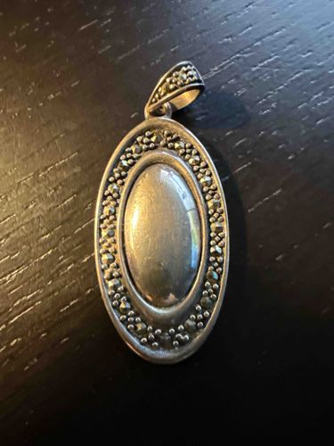 Vintage Sterling Silver and Marcasite Oval Locket or Pendant