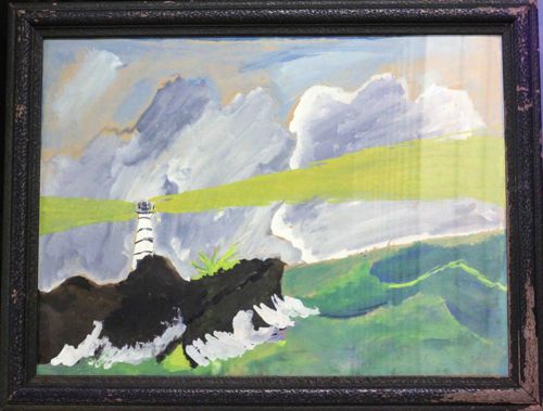 Folk Art Lighthouse Coastal Landscape Painting