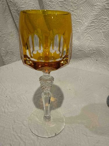 Val Saint Lambert Amber Cut-to-Clear Crystal Hock Wine Glass
