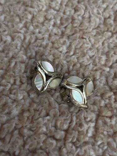 Vintage Trifari Mother of Pearl Inlay Trifoil Earrings