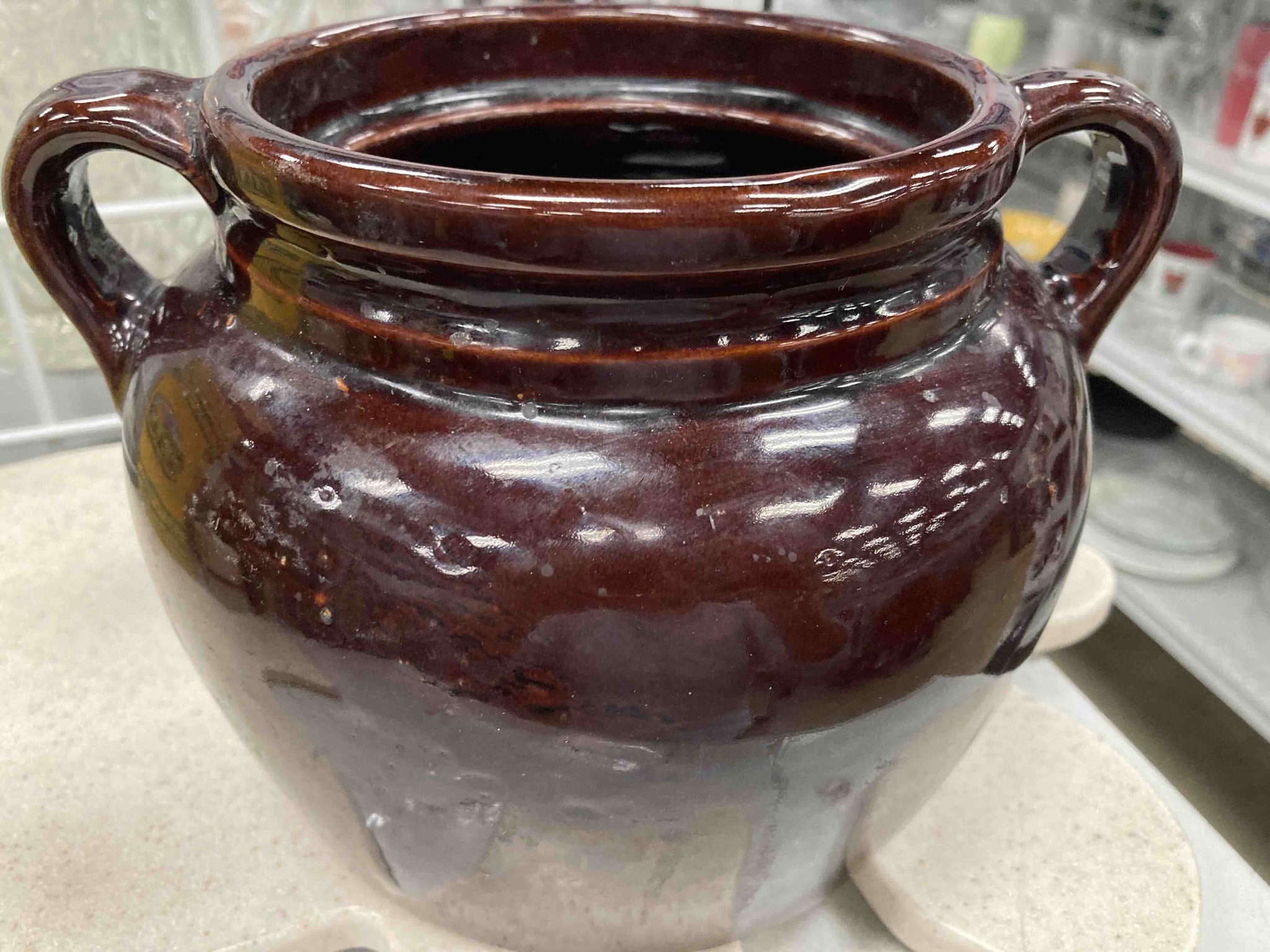 Vintage American Stoneware Brown Glazed Bean Pot