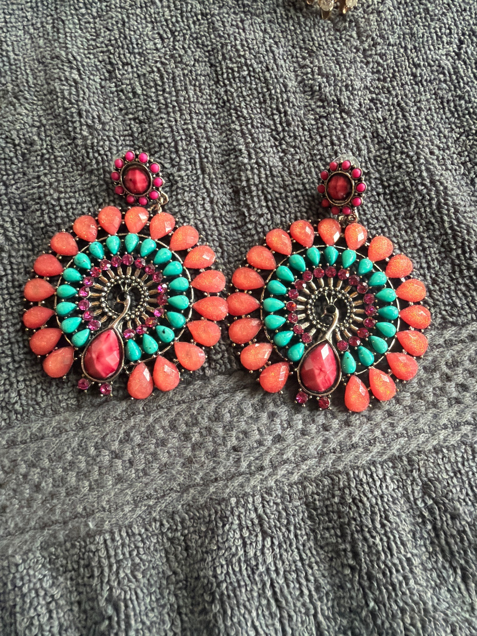 Bohemian Peacock Motif Post-Drop Statement Earrings