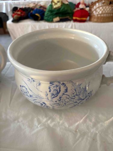 Victorian Blue and White Transferware Ceramic Chamber Pot
