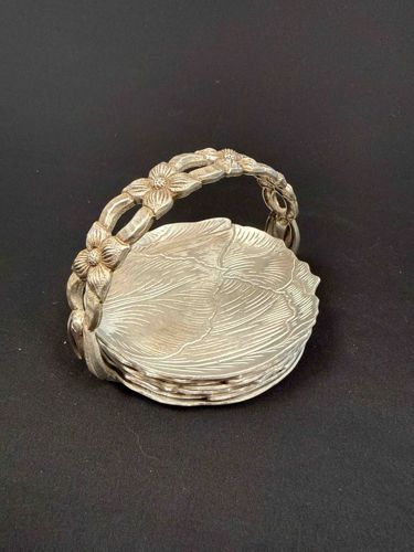 Vintage Silver-Plated Leaf Coaster Set with Floral Basket Caddy