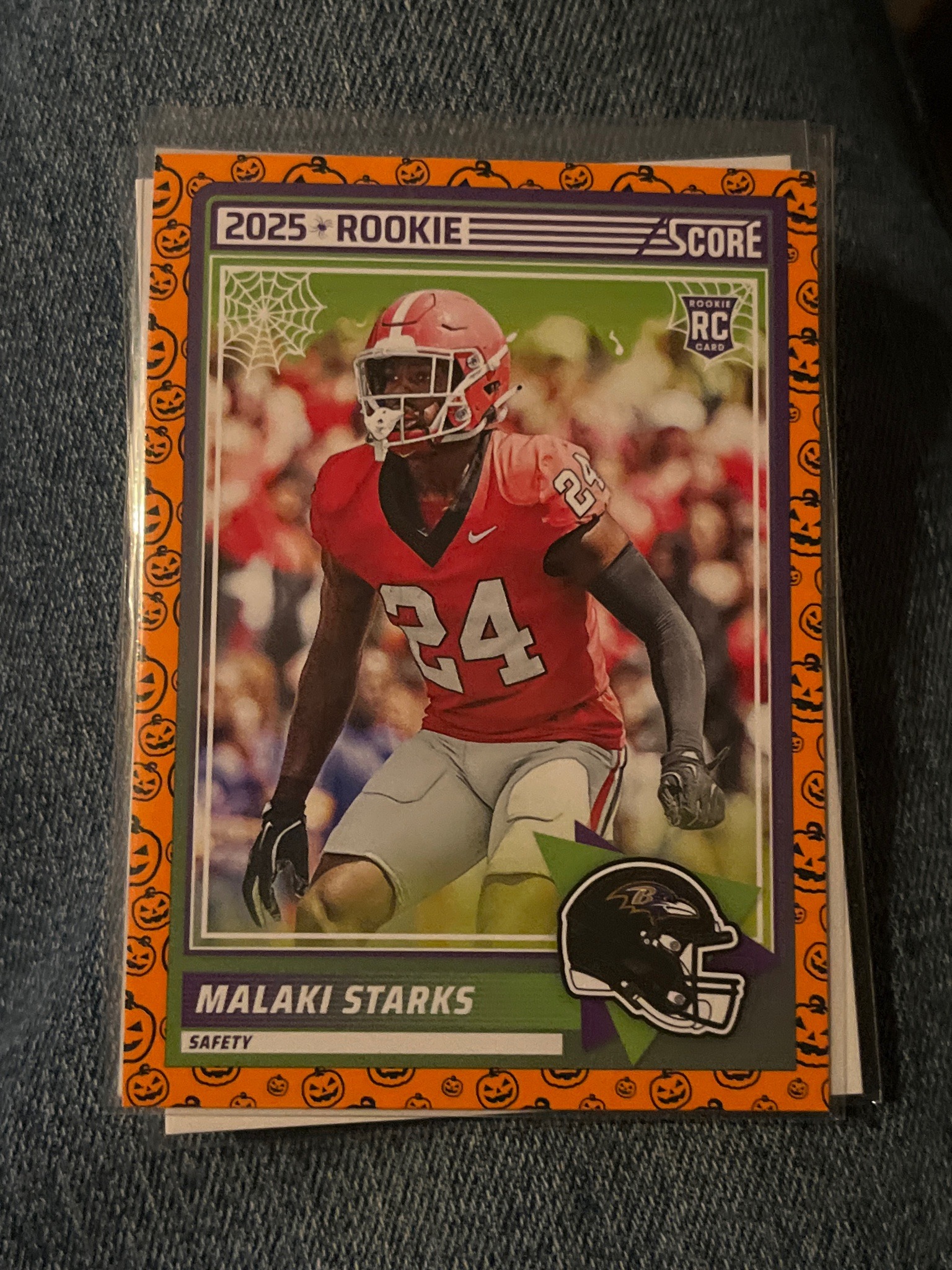2024 Panini Score Football Malaki Starks Halloween Pumpkin Border Rookie Card