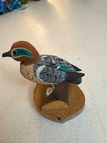 Japanese Hand-Carved Wooden Green-Winged Teal Duck Figurine