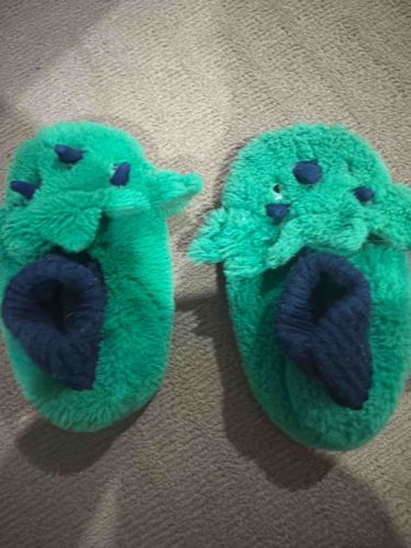 Children's Plush Teal Dinosaur Slippers