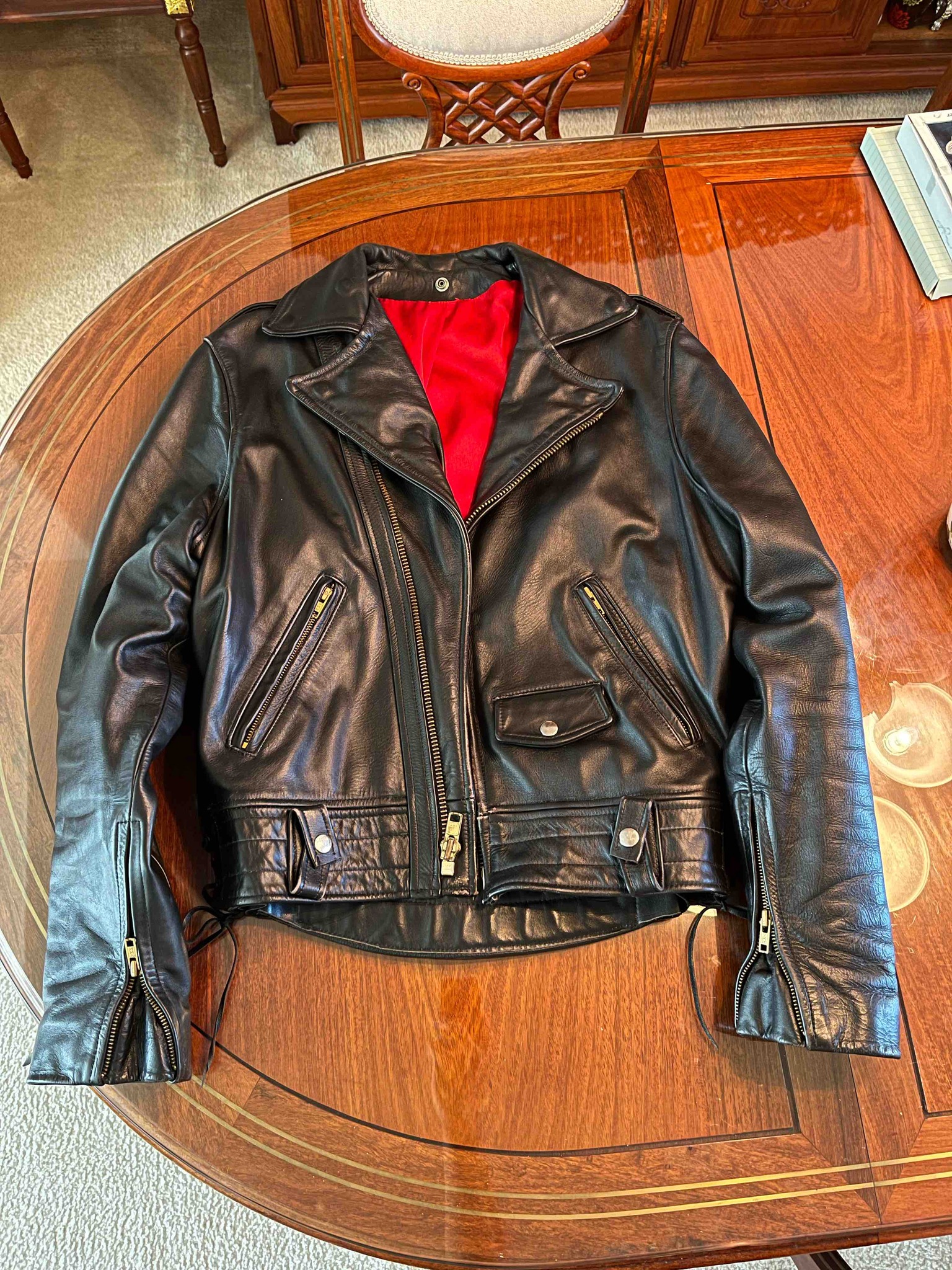 30yr old San Diego, leather jacket, factory, motorcycle cop jacket