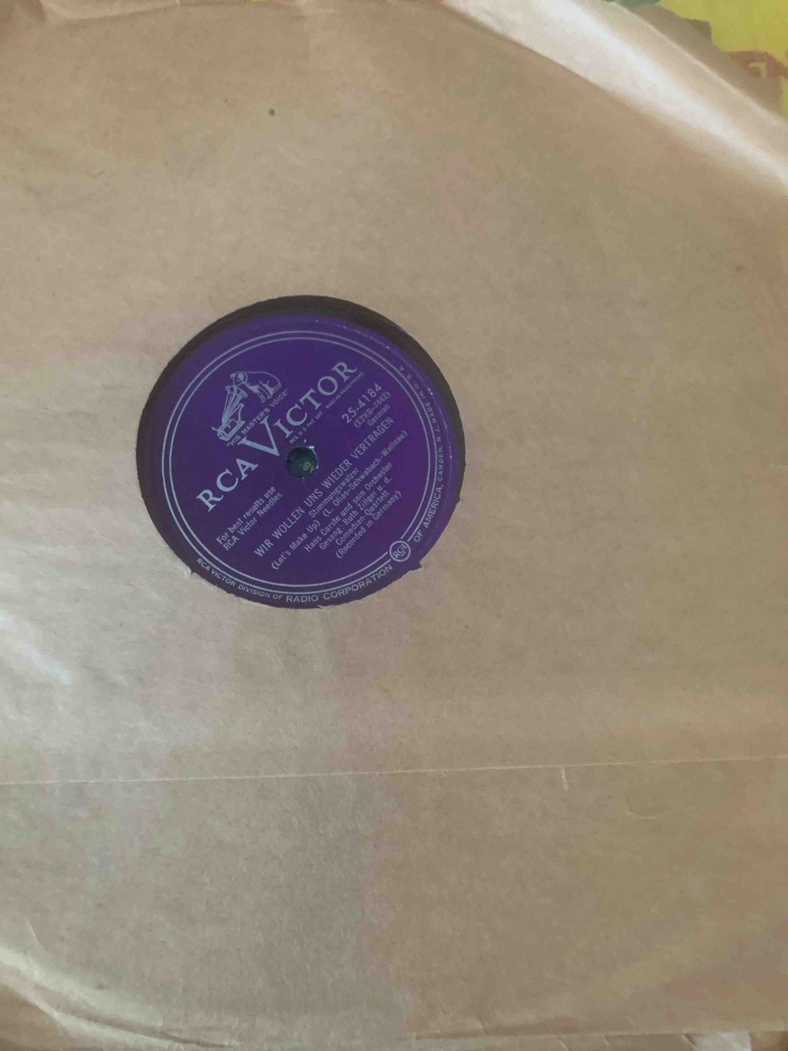 RCA Victor 78 RPM Record: Wir Wollen Uns Wieder Vertragen (25-4184)