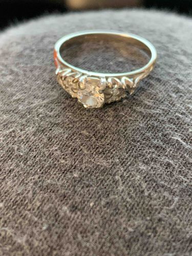 Vintage Filigree White Metal Ring with Round Brilliant Cut Stone