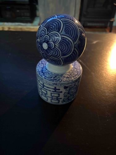 Chinese Blue and White Porcelain 'Double Happiness' Finial or Seal