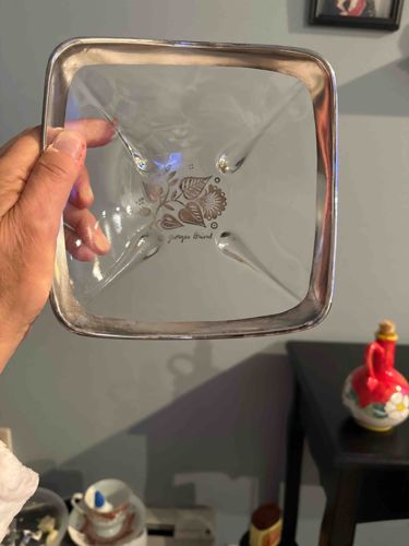 Georges Briard Silver-Trimmed Square Glass Serving Bowl