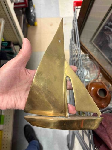 Mid-Century Modern Brass Sailboat Figurine