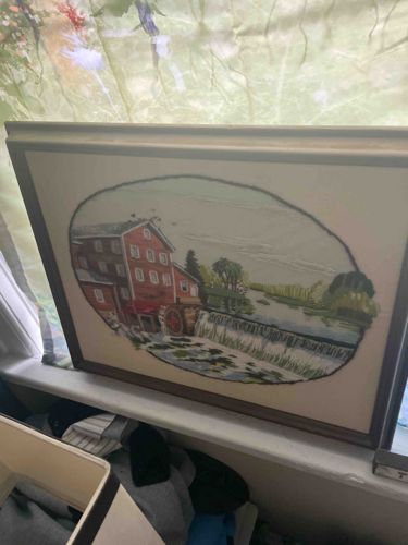 Vintage Framed Grist Mill Landscape Art