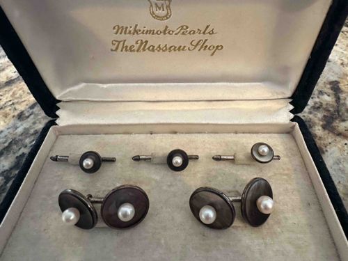 Vintage Mikimoto Sterling Silver and Akoya Pearl Formal Tuxedo Set