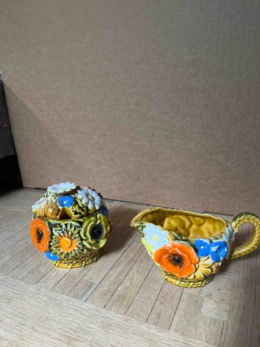 Vintage Majolica-Style Floral Creamer and Sugar Bowl Set
