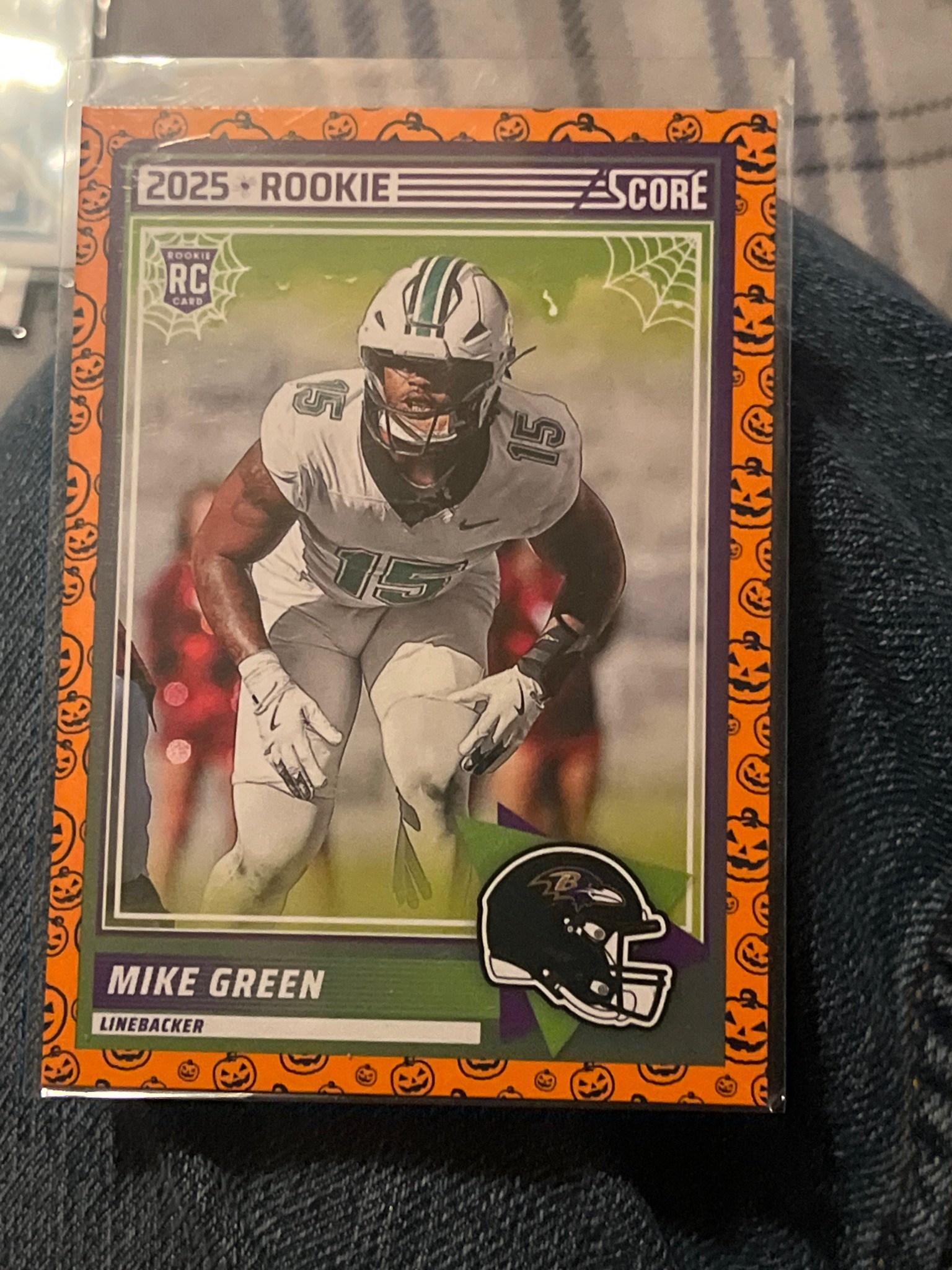 2025 Panini Score Mike Green Rookie Card - Halloween Jack-O'-Lantern Parallel