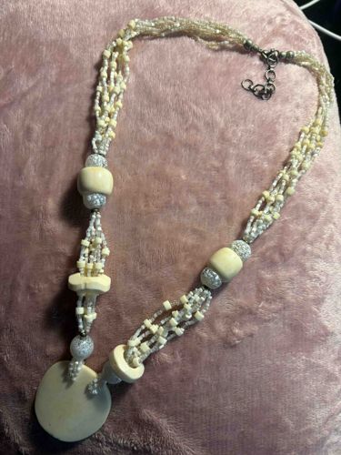 Vintage Multi-Strand Carved Bone and Seed Bead Statement Necklace