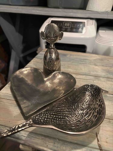 Cast Metal Decorative Dish Set featuring Heart and Bird with Figural Bust
