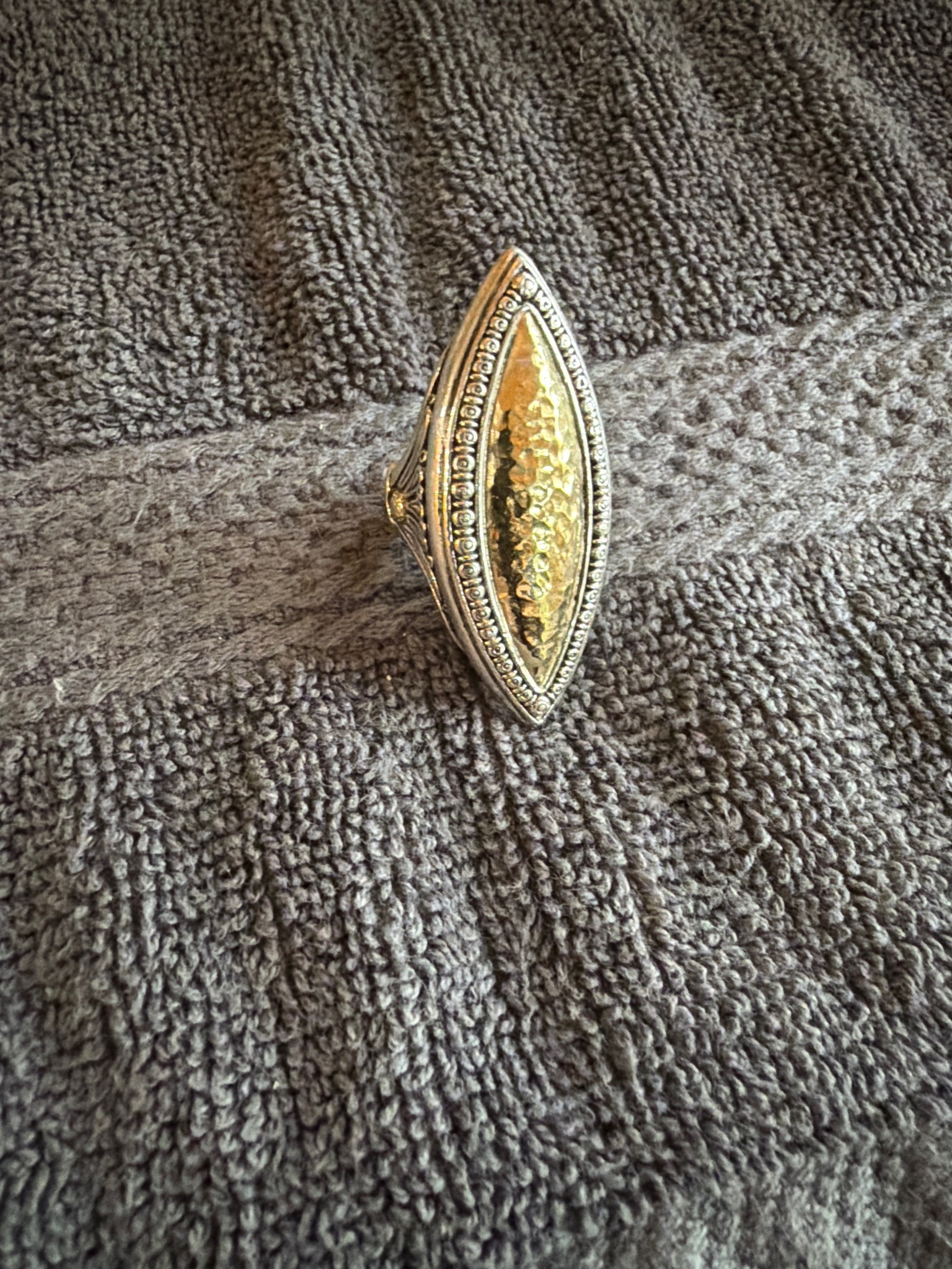 Konstantino Sterling Silver and 18k Gold Hammered Marquise Ring