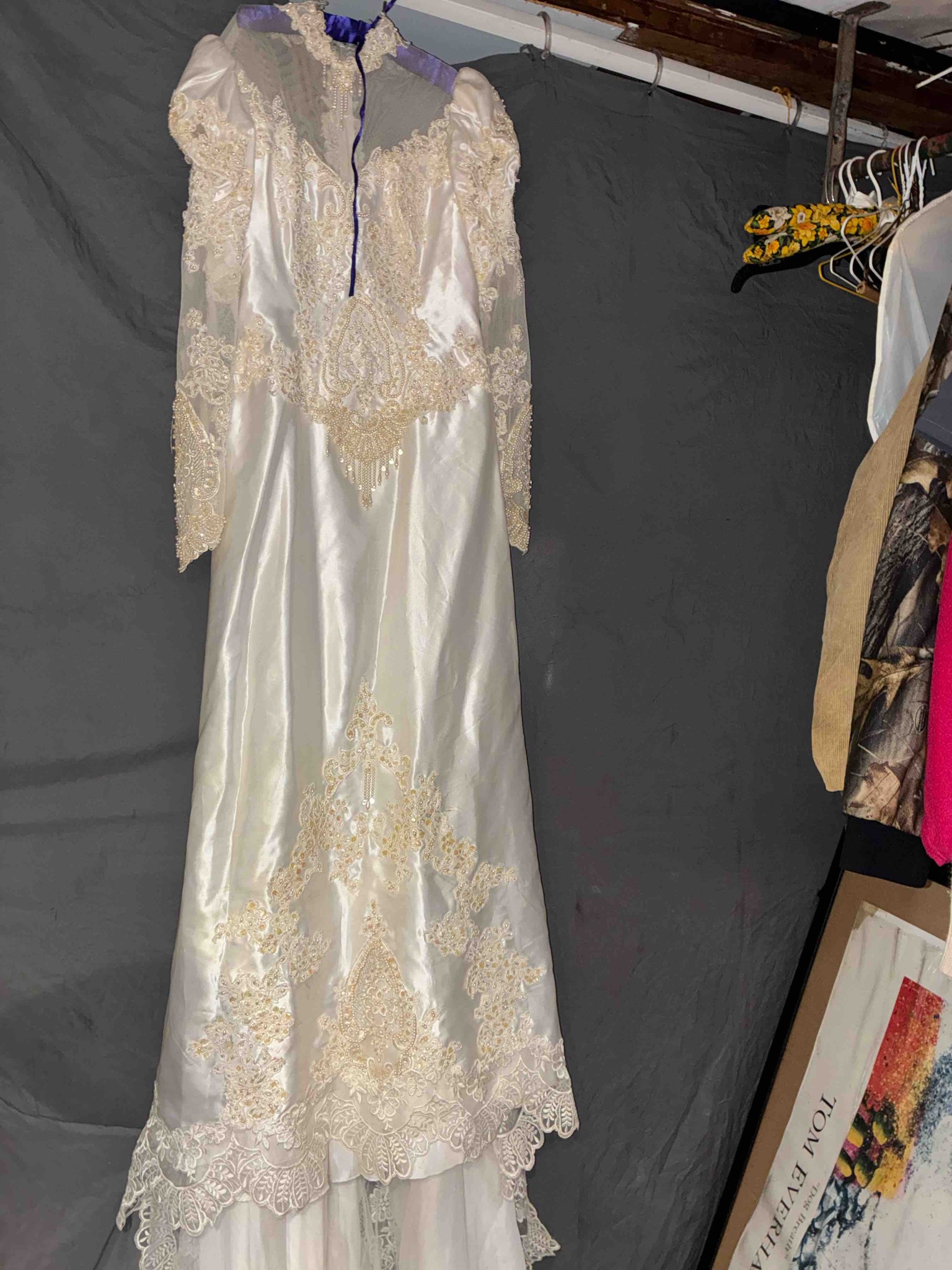 Vintage 1980s Long-Sleeve Beaded Lace Wedding Dress