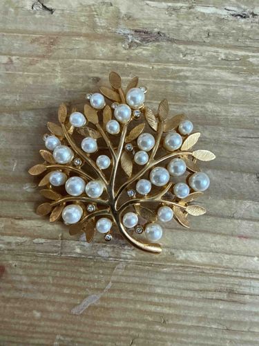 Vintage Trifari 'Tree of Life' Faux Pearl and Rhinestone Brooch