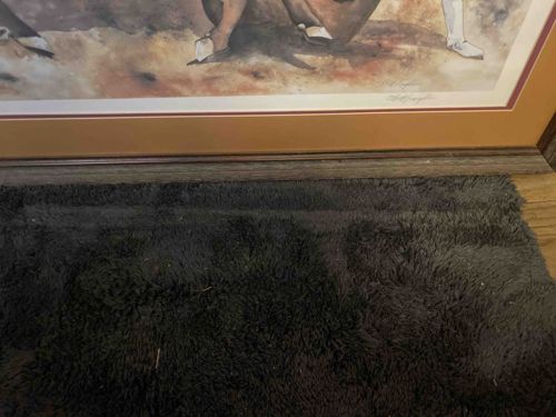 This item is a large-format, limited edition art print by the renowned American historical artist Mort Künstler. The visible portion of the artwork depicts a scene with figures in 19th-century attire, likely portraying a Civil War or American historical event, executed in a realistic, painterly style with a palette of earth tones, tans, and browns. A critical feature of this piece is the presence of two signatures in the lower right margin: a printed signature within the plate and a hand-signed graphite pencil signature by the artist himself on the white border of the paper. This indicates it is a collectible artist-signed edition. The print is professionally presented in a double-matting system, featuring a wide tan outer mat and a thin reddish-brown inner accent mat, which complements the warm tones of the artwork. It is housed in a carved wooden frame with a rustic, slightly distressed finish. Regarding condition, the visible paper appears flat and well-preserved within the mounting. The framing shows minor surface wear consistent with age, though the integrity of the matting seems high. This style of work gained significant popularity in the late 20th century, specifically the 1980s and 1990s, when Künstler's historical realism was highly sought after by collectors of Americana.