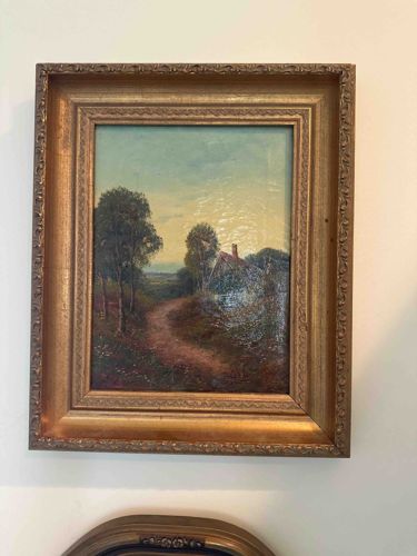 Late 19th or Early 20th Century Cottage Landscape Oil Painting