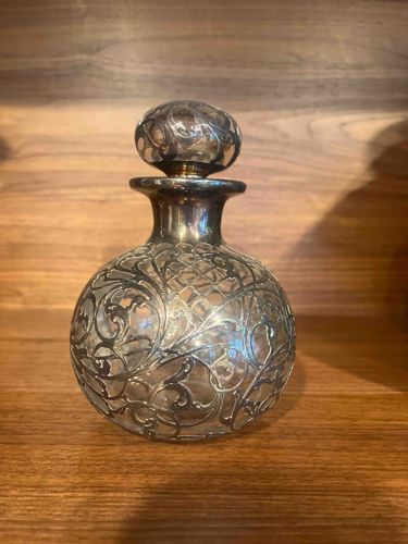 Antique Sterling Silver Deposit Glass Perfume Bottle