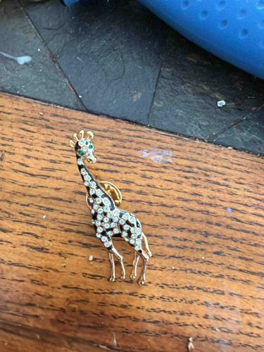 Rhinestone and Enamel Giraffe Figural Lapel Pin