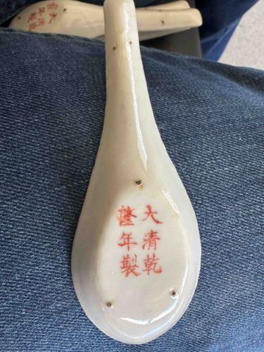 Set of Six Chinese Porcelain Soup Spoons with Qianlong Mark